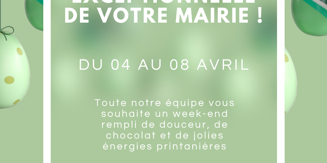 Votre mairie de Busserolles sera exceptionnellement fermée du 4 au 8 avril 2026. Joyeuses pâques !